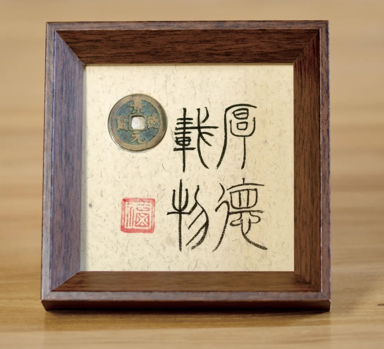 COINBASE“厚德载物+古钱”手写书法办公桌文创
